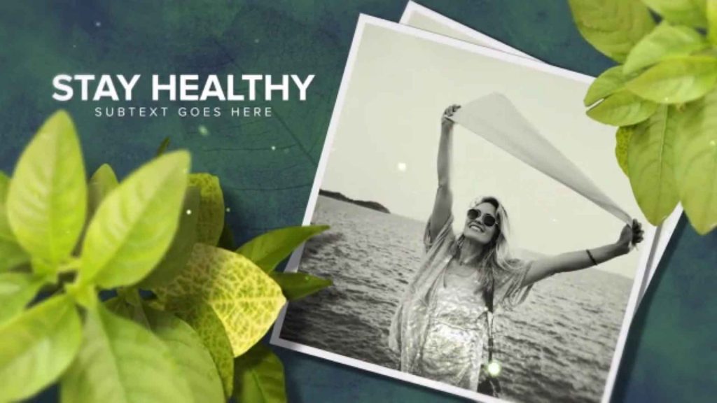 پروژه افتر افکت wellness & health promo یک پروژه اسلایدشو کلاسیک با تزیین برگ درختان است.